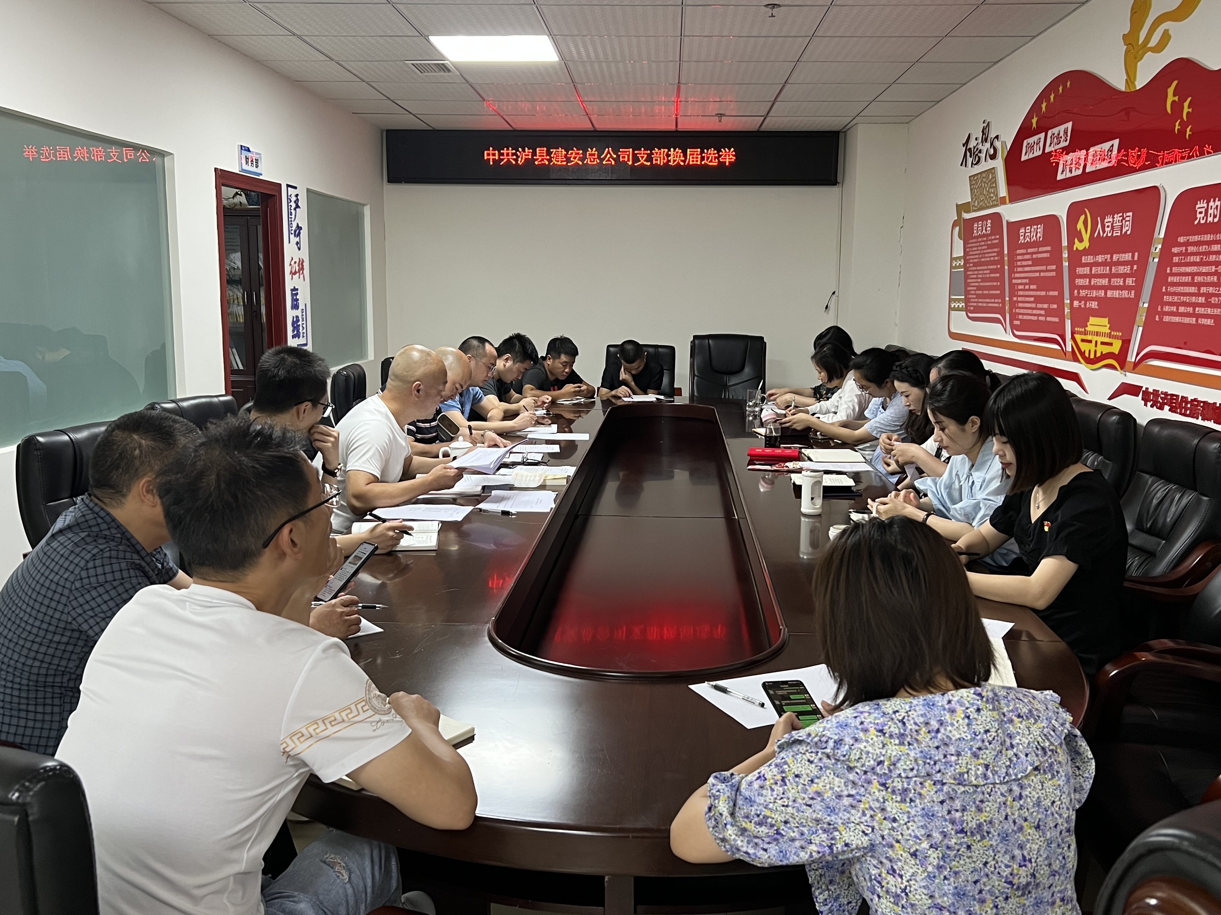 2022年6月15日上午,四川省瀘縣建筑安裝工程總公司在公司會議室進行了支部換屆活動。本次活動共選舉出一名支部書記: 廖濤同志,和四名委員。分別由劉治李擔任青年委員、陳雪梅擔任宣傳委員、鄒登國擔任紀檢委員、曾興富擔任組織委員。 選舉完成后,共評選了兩名本年度的優秀共產黨員:曾興富、劉治李。且對本年度學習強國積分前10名同志進行了表彰。均由支部書記廖濤為獲獎者頒獎。本次活動激發了全體同志學習熱情,鼓舞大家繼續積極向優秀品質學習,爭取全員學習,形成良好的精神品質。